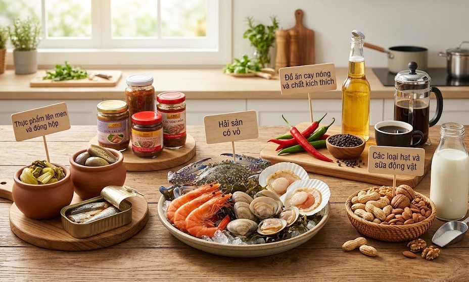 Việc nhận diện và loại bỏ các thực phẩm có nguy cơ gây dị ứng cao sẽ giúp bạn tránh được những đợt bùng phát bệnh không đáng có: