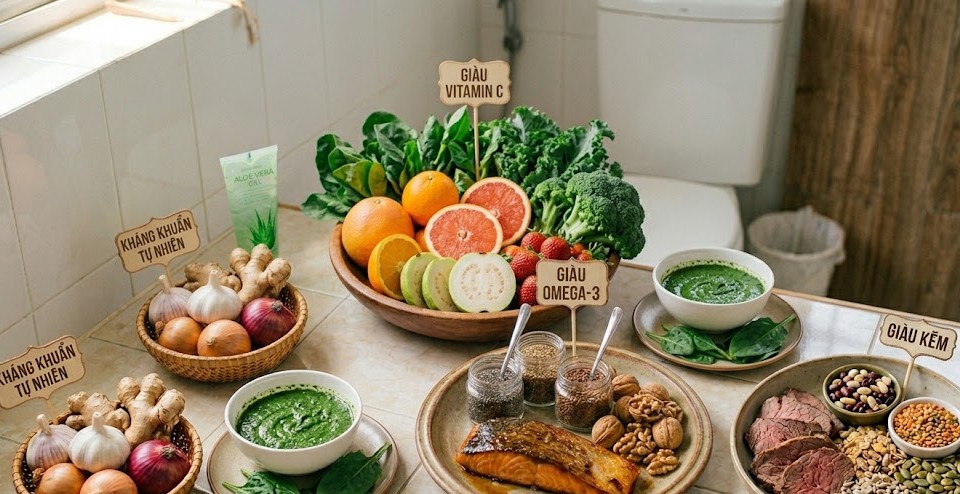 - Thực phẩm giàu kẽm: Thịt bò nạc, các loại đậu và hạt ngũ cốc giúp thúc đẩy quá trình làm lành vết thương và củng cố hệ miễn dịch vững vàng hơn.
